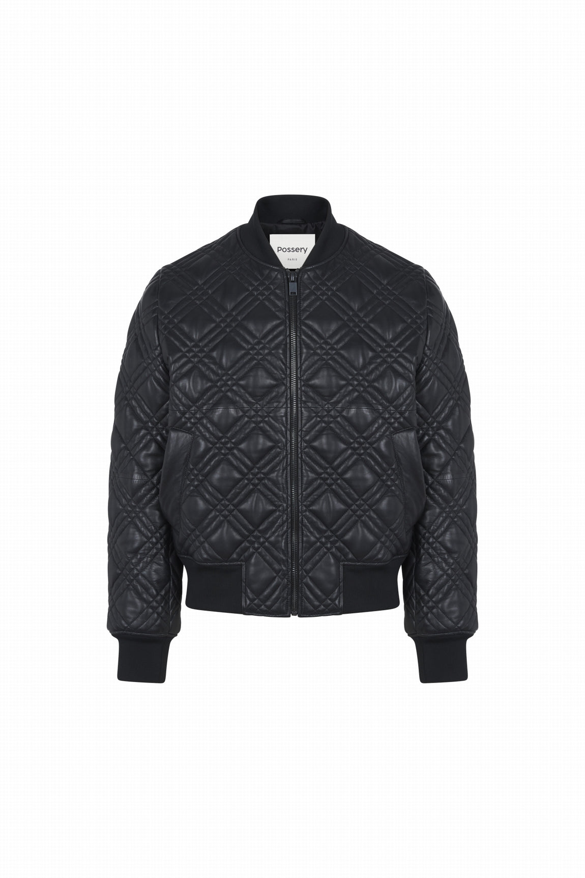 The HENLEY model is a quilted bomber-style leather jacket.