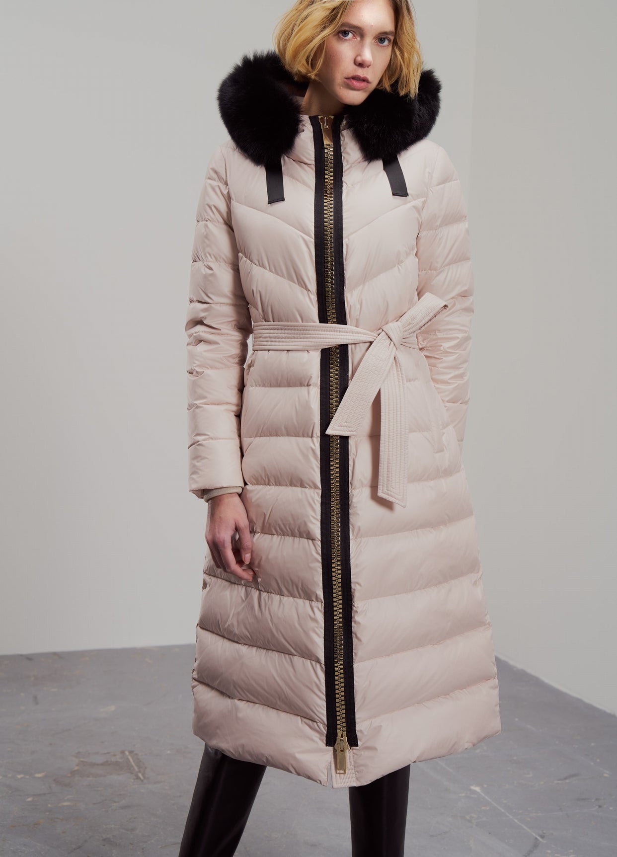 The COLOMBIE model is a long fitted coat with jumbo zip.