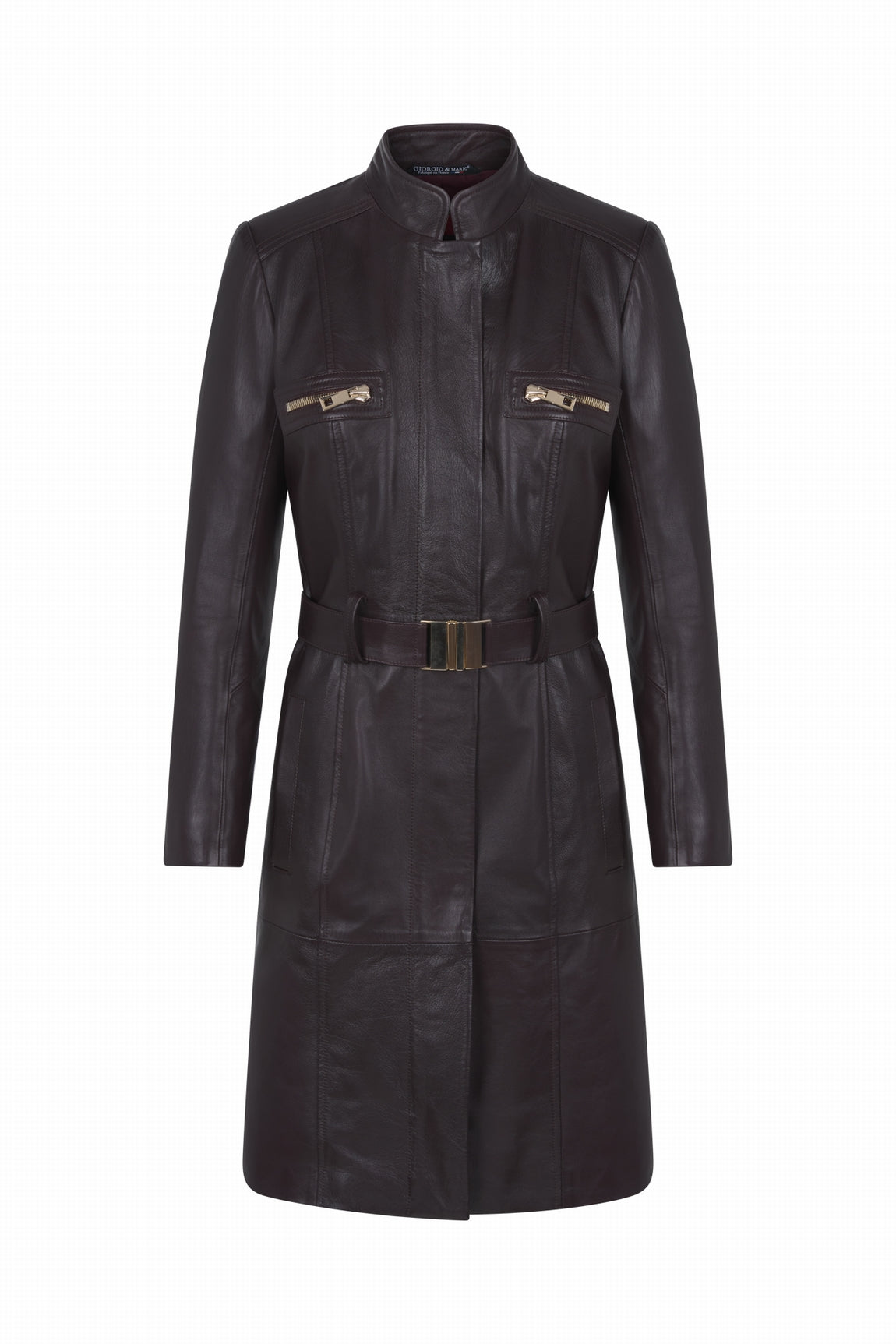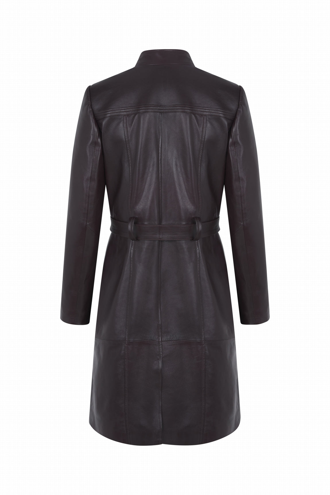 The STANLEY WAXY straight leather coat from POSSERY is a sleek and modern choice in lambskin to assert your style with sophistication. Its straight cut and belt with belt loops at the waist offer a chic and structured silhouette.
