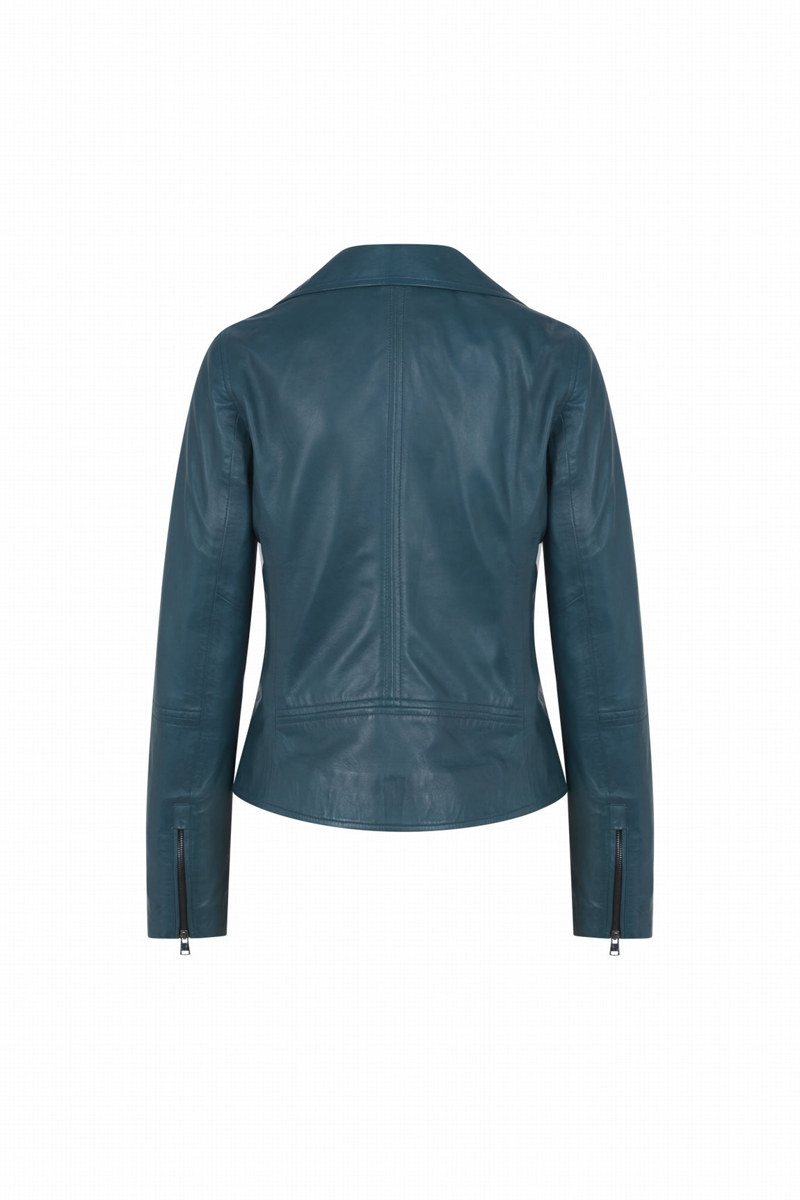 The MELVILLE perfecto jacket stands out with its diagonal zip fastening, which gives it an iconic and modern style. Featuring three zipped pockets on the front, it combines elegance and functionality, allowing you to keep your essentials close at hand. The zips at the bottom of the sleeves add a touch of practical and trendy detail.