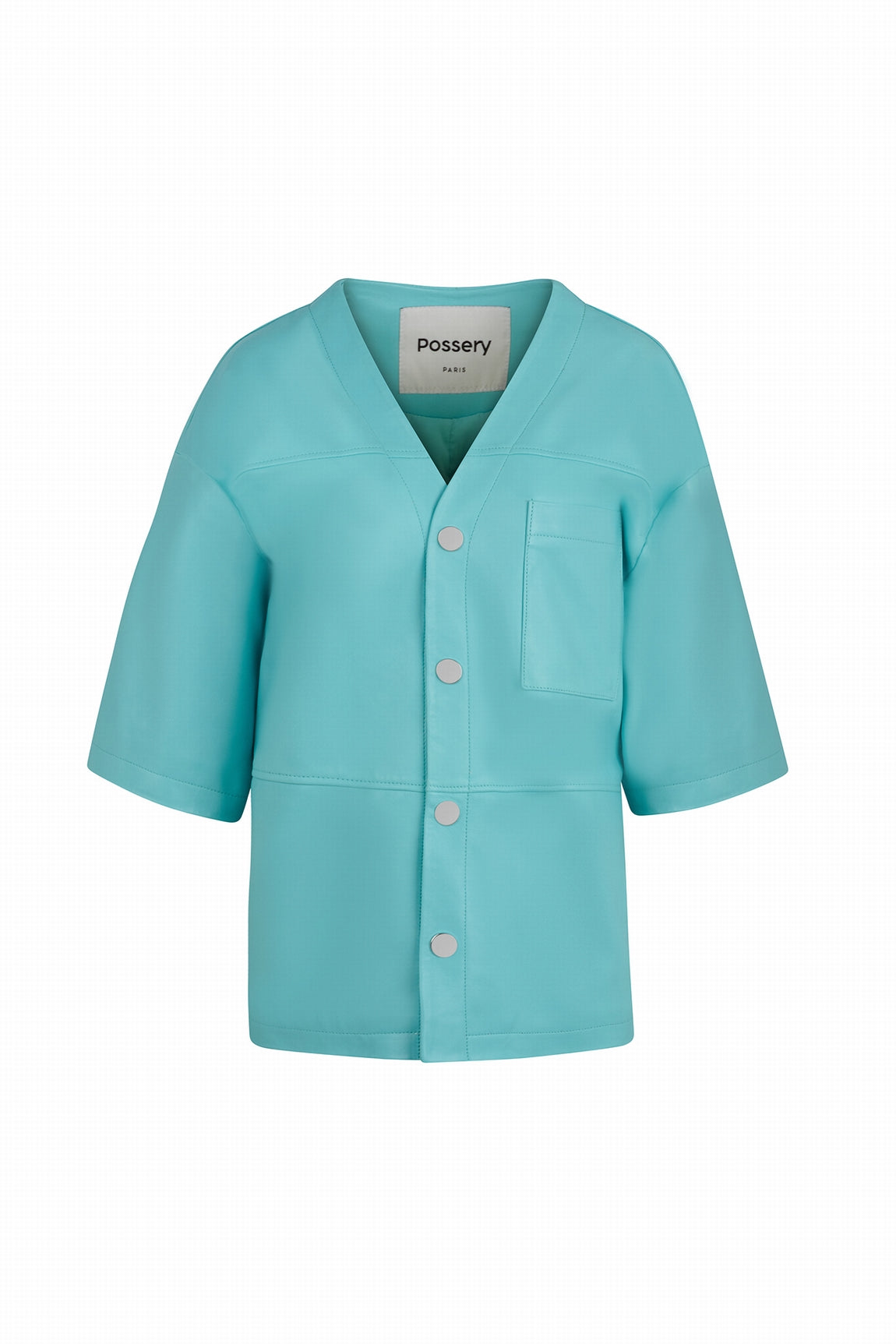 Its V-neck and central snap closure add a modern touch, while its large patch pocket adds both character and functionality. Small side slits ensure freedom of movement and a perfect fit.