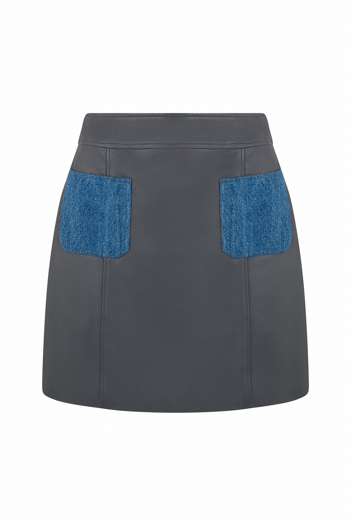LEATHER SKIRT WITH DENIM POCKETS - SLOUGH DENIM