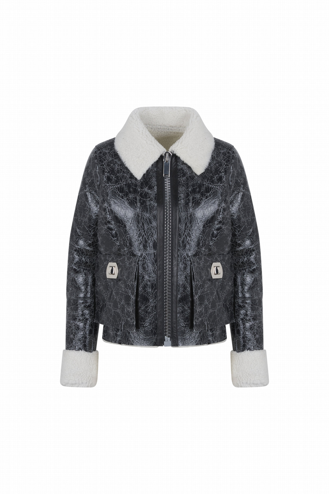 Le modèle PETERSON est un blouson en shearling craquelé.