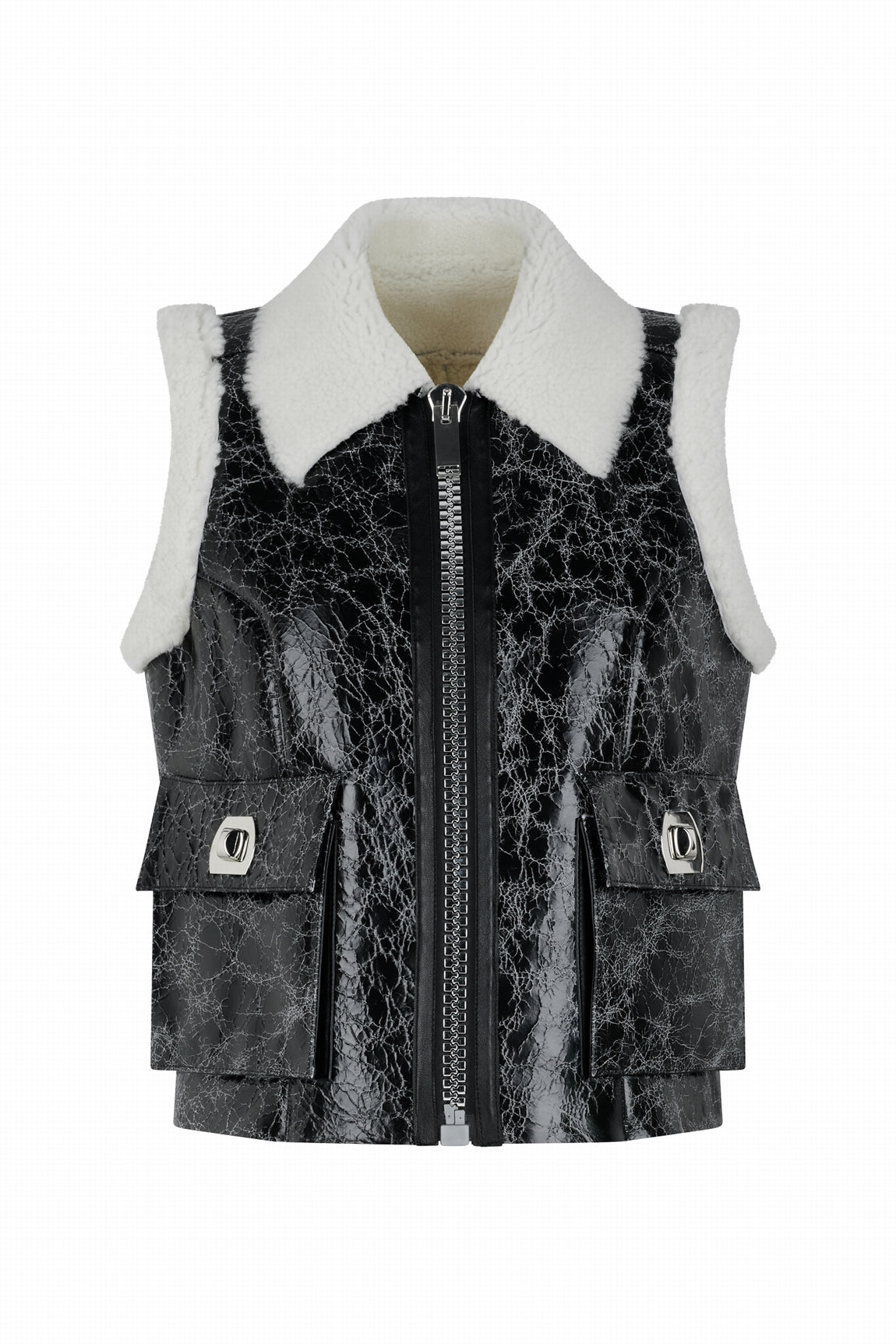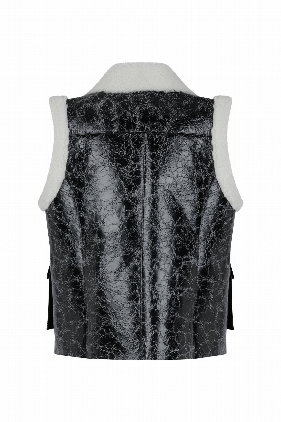 Le modèle WINKLER est un gilet en shearling craquelé.