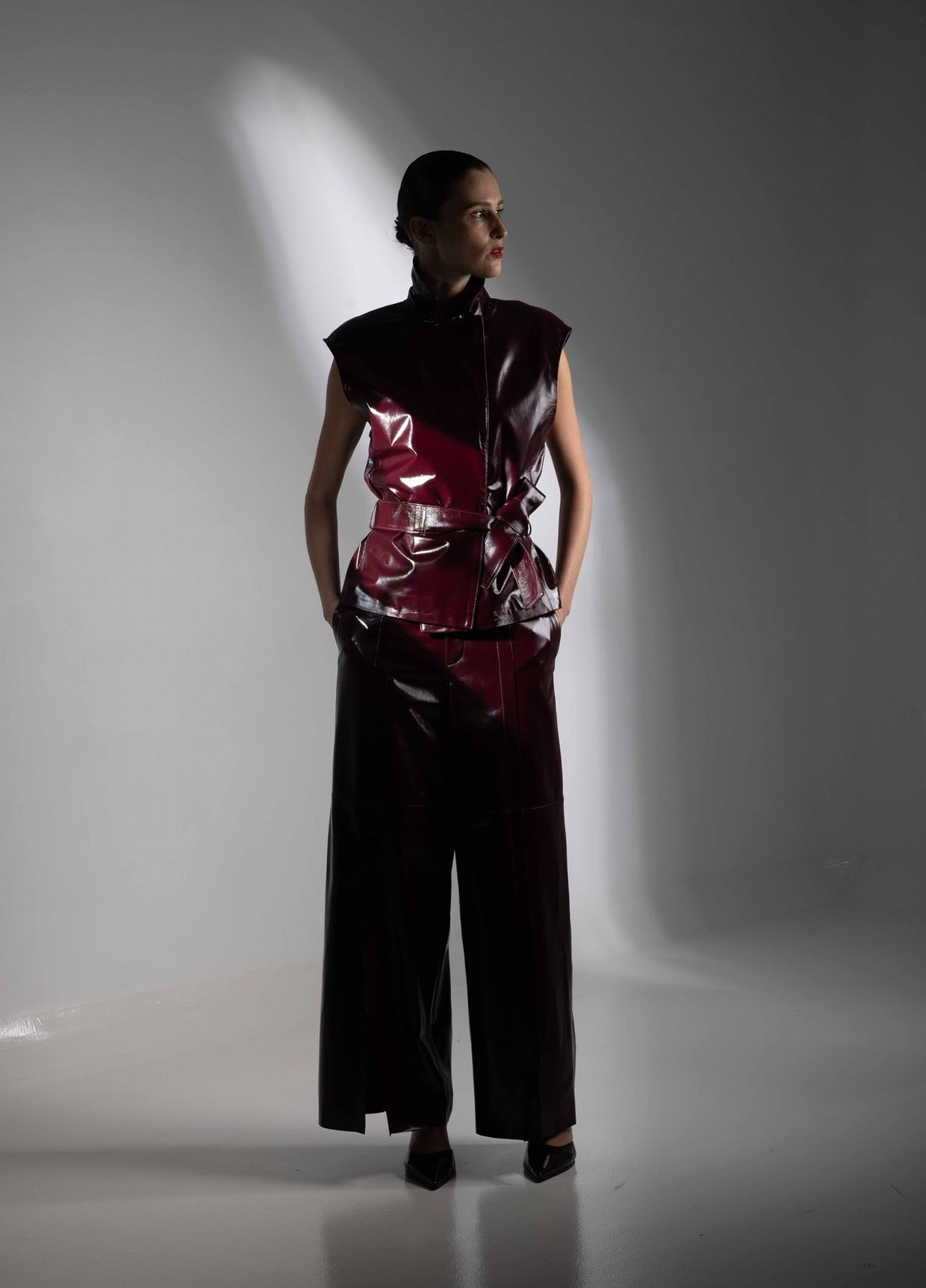 GILET TOP EN CUIR BRILLANT - HORNELA